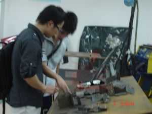 學(xué)長(zhǎng)朱福鏢(現(xiàn)龍神實(shí)操技師)與社團(tuán)成員交流實(shí)踐經(jīng)驗(yàn)